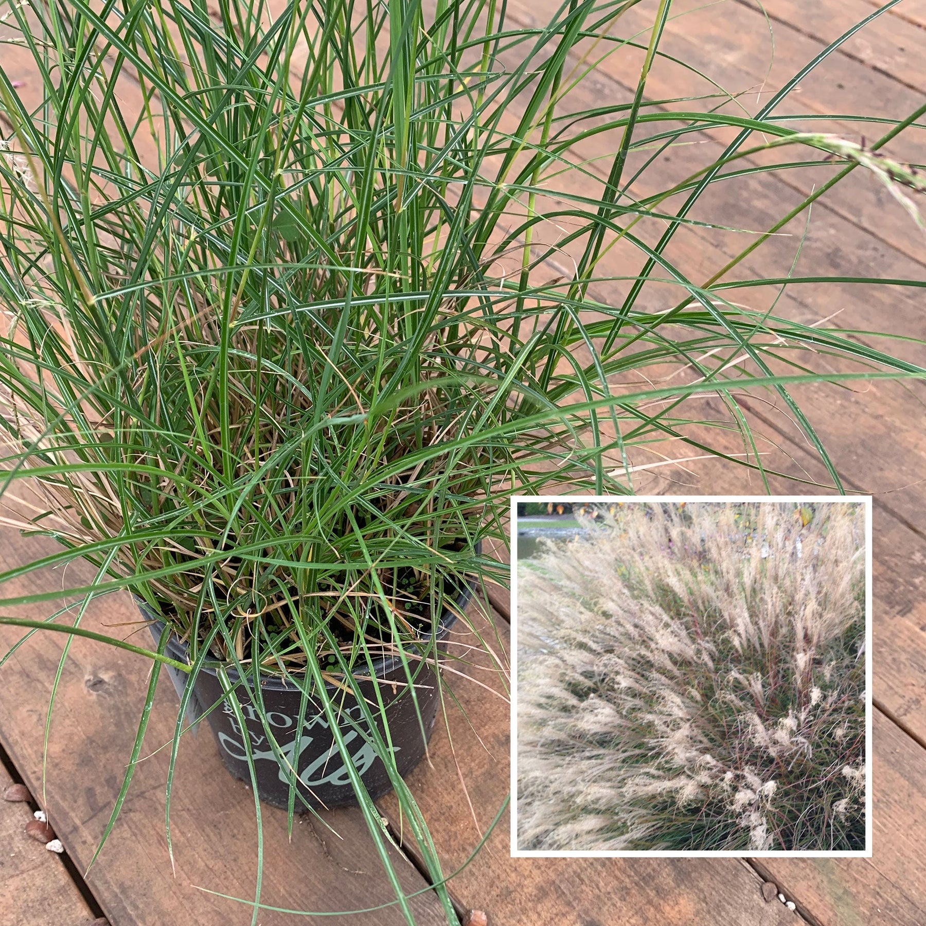 Little Miss Miscanthus is a compact ornamental grass known for its stunning plumes and fine-textured foliage. This hardy plant adds graceful movement and a touch of elegance to any garden while being low-maintenance in nature. Perfect for borders or as a standout specimen, it provides year-round interest, particularly during the fall when the fluffy seed heads are most pronounced.