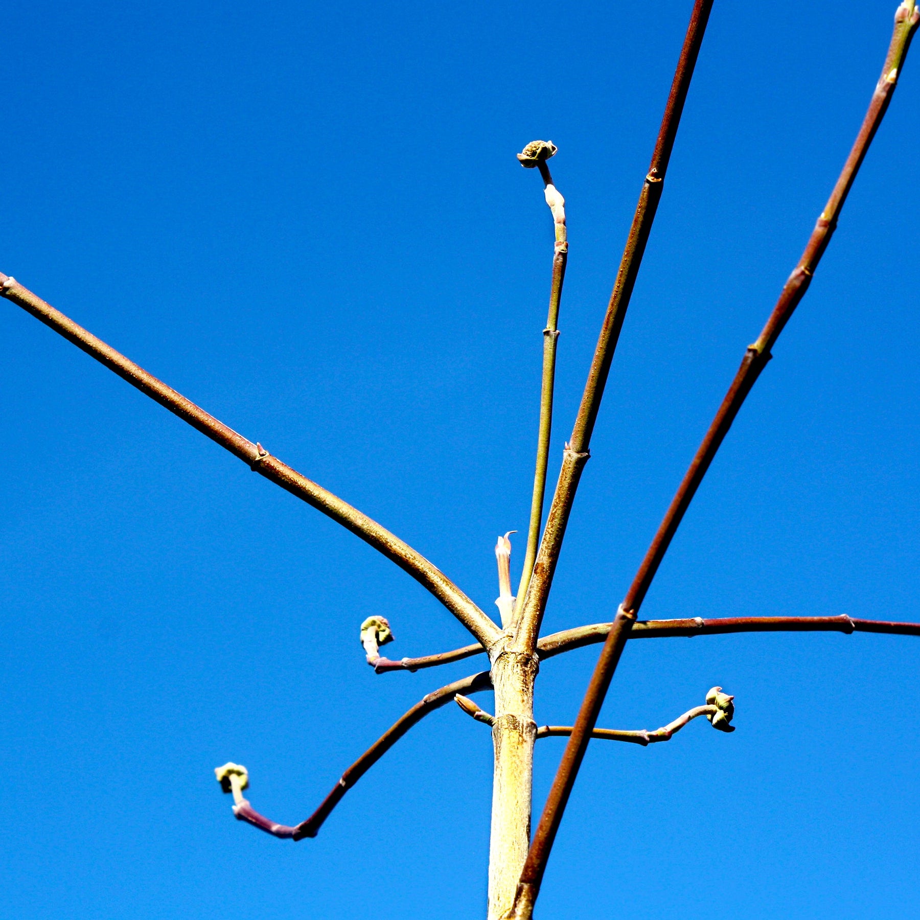The Pagoda Dogwood is a beautiful small tree known for its distinct layered branching and unique horizontal growth habit. Its attractive foliage features dark green leaves that turn golden-yellow in the fall, making it a lovely addition to any landscape. Perfect for residential gardens, this tree also produces small white flowers in spring, followed by blue-black fruit that attracts birds.