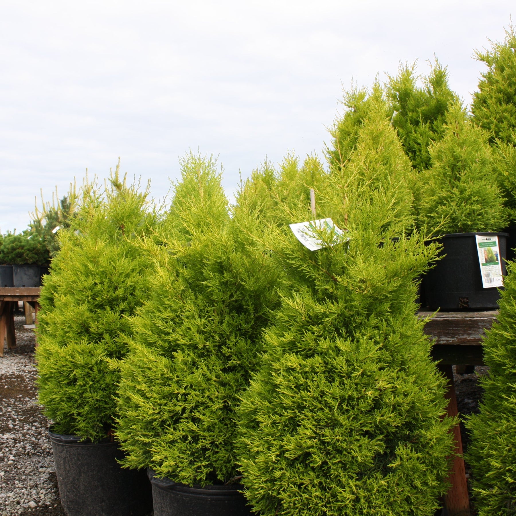 Wilma Goldcrest Monterey Cypress is a striking conifer known for its vibrant, golden-yellow foliage that adds a touch of sunshine to any landscape. This compact evergreen is perfect for small gardens and containers, providing year-round color and texture. Its unique upright growth habit makes it a delightful addition to borders or patio displays.