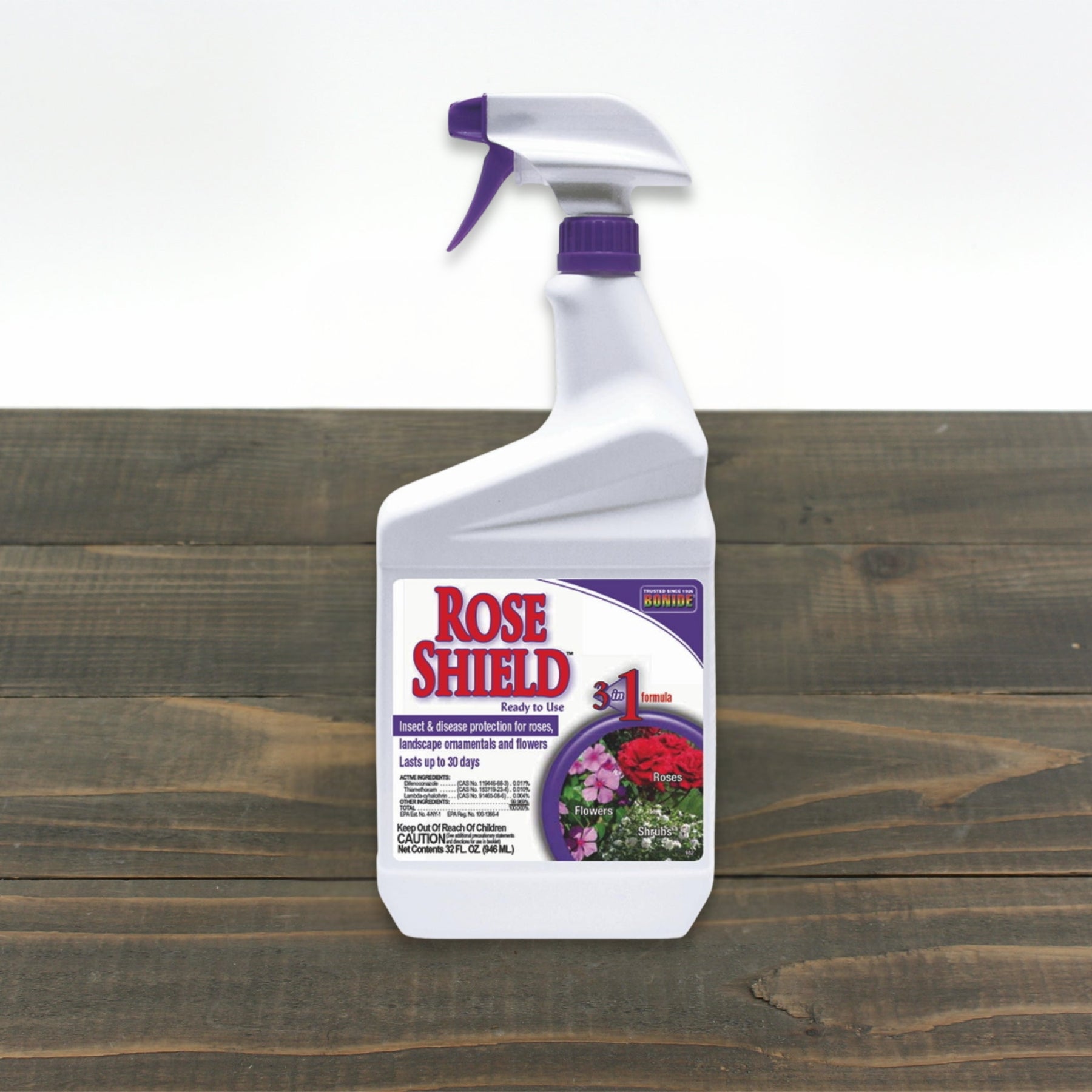 Bonide Rose Shield™ works as both an insecticide & contact & systemic fungicide. The advanced formula kills bugs on contact while providing direct and continuous results on listed diseases. Can be used on listed roses, flowers, landscaped plants, trees, shrubs, and ground covers.