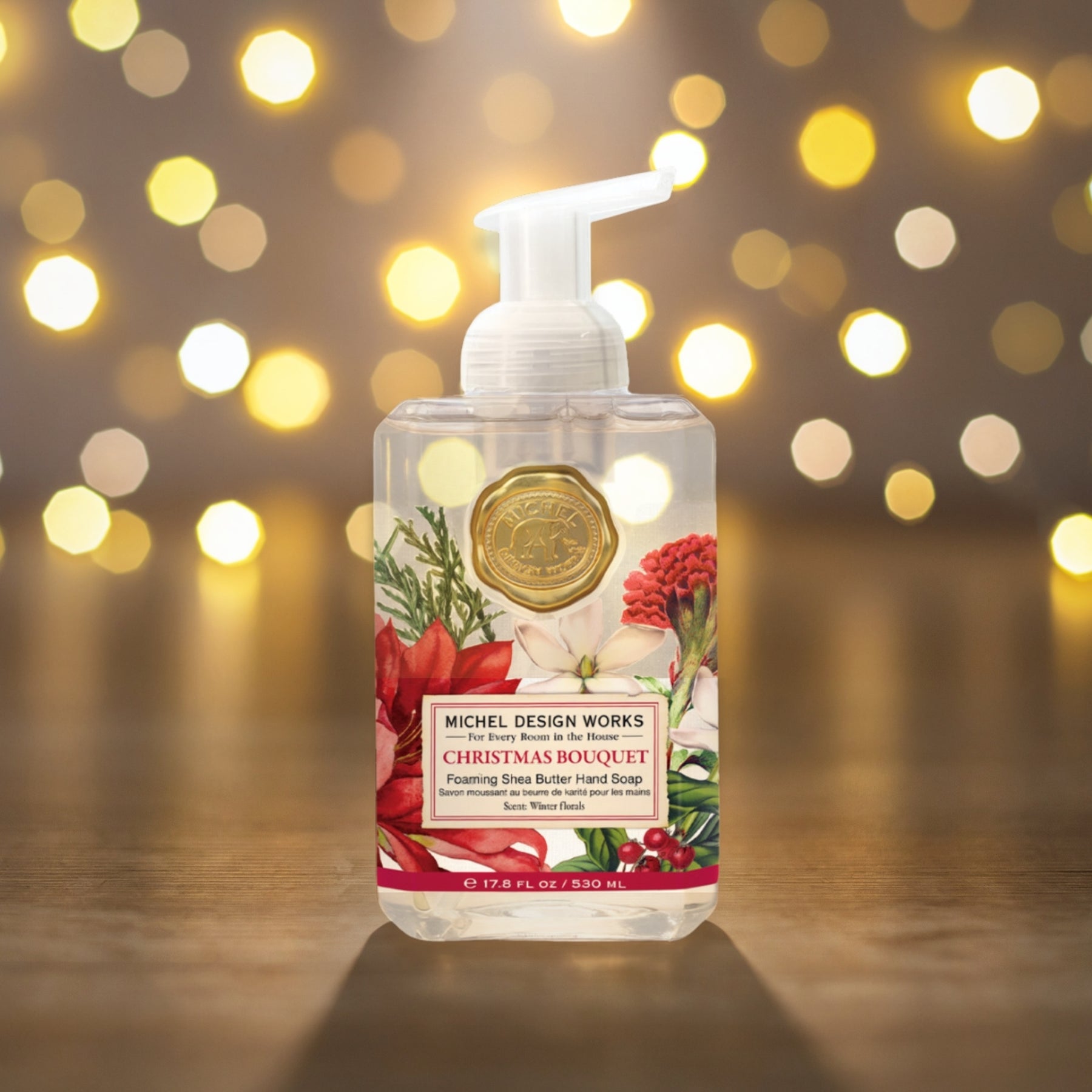 Spread holiday cheer with Michel Design Works' Christmas Bouquet Collection. Brimming with festive red fruit, jasmine, and lavender scents, these adorable bathroom and kitchen pieces will bring festive fun and delightful aromas. Make your home merry and bright!